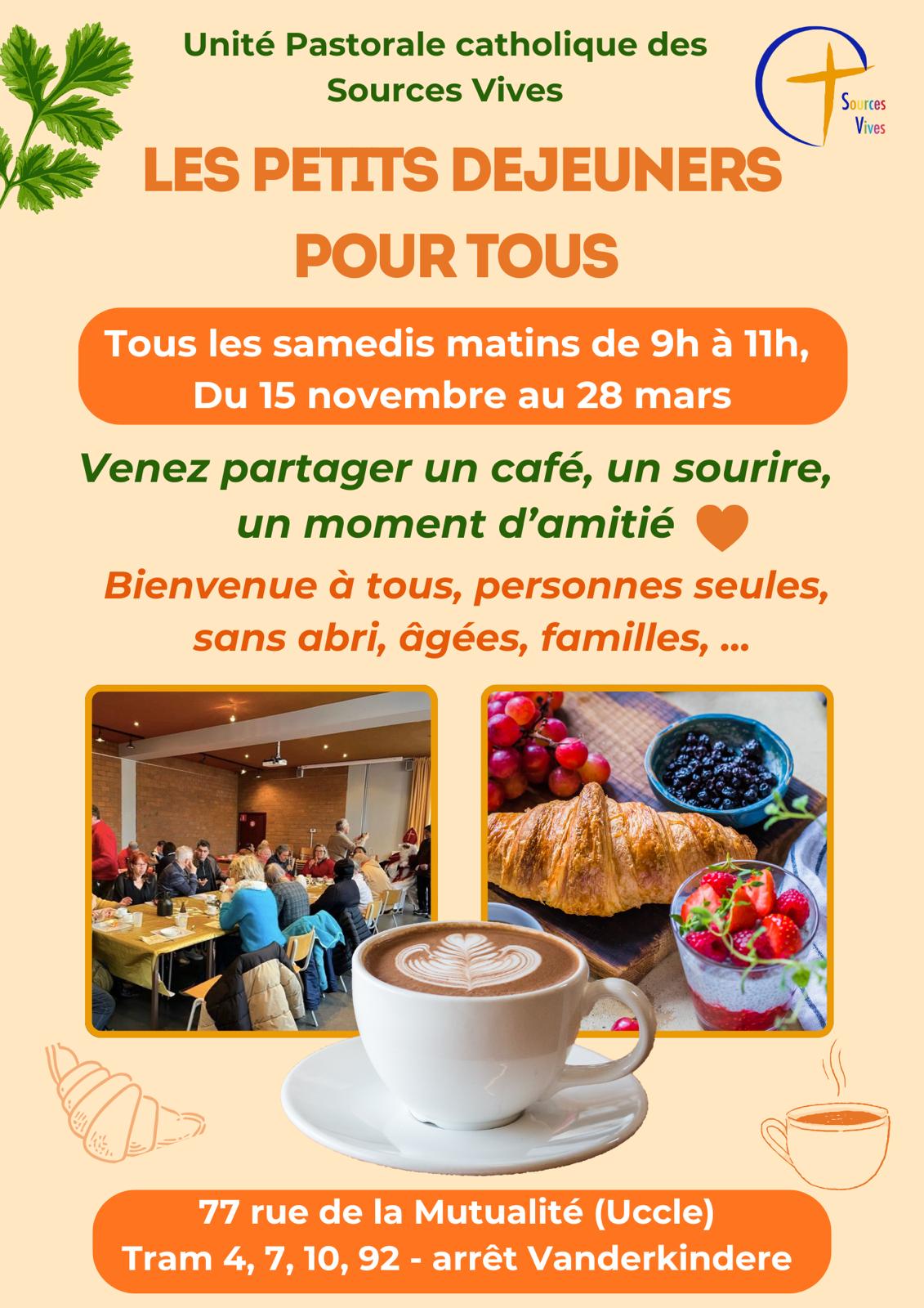 - P'tits dej pour tous du samedi matin : c'est reparti ! Rv tous les samedis matins jusqu'au 28 mars au 77 rue de la Mutualité (Uccle).