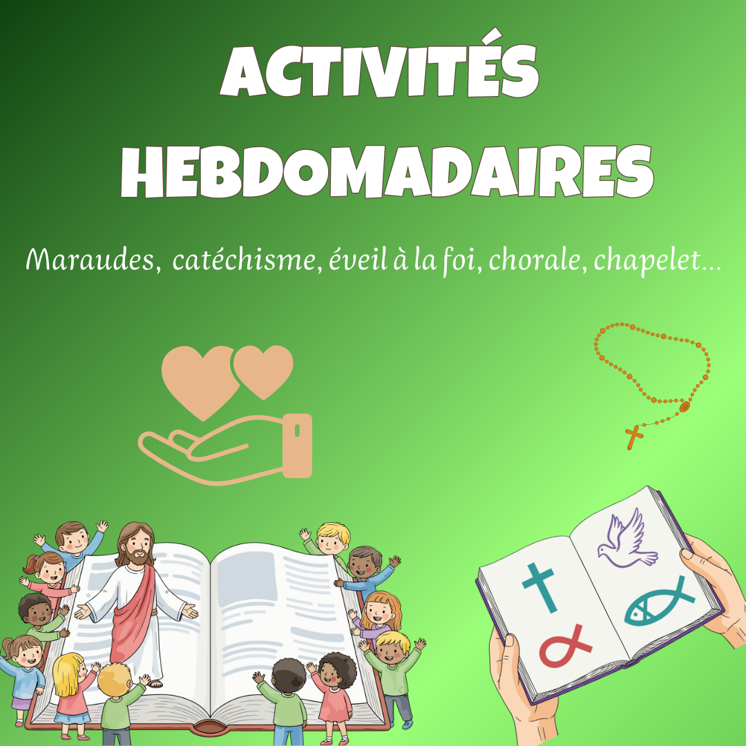 - Chapelet : tous les jours de semaine au Sacré Coeur à 16h50