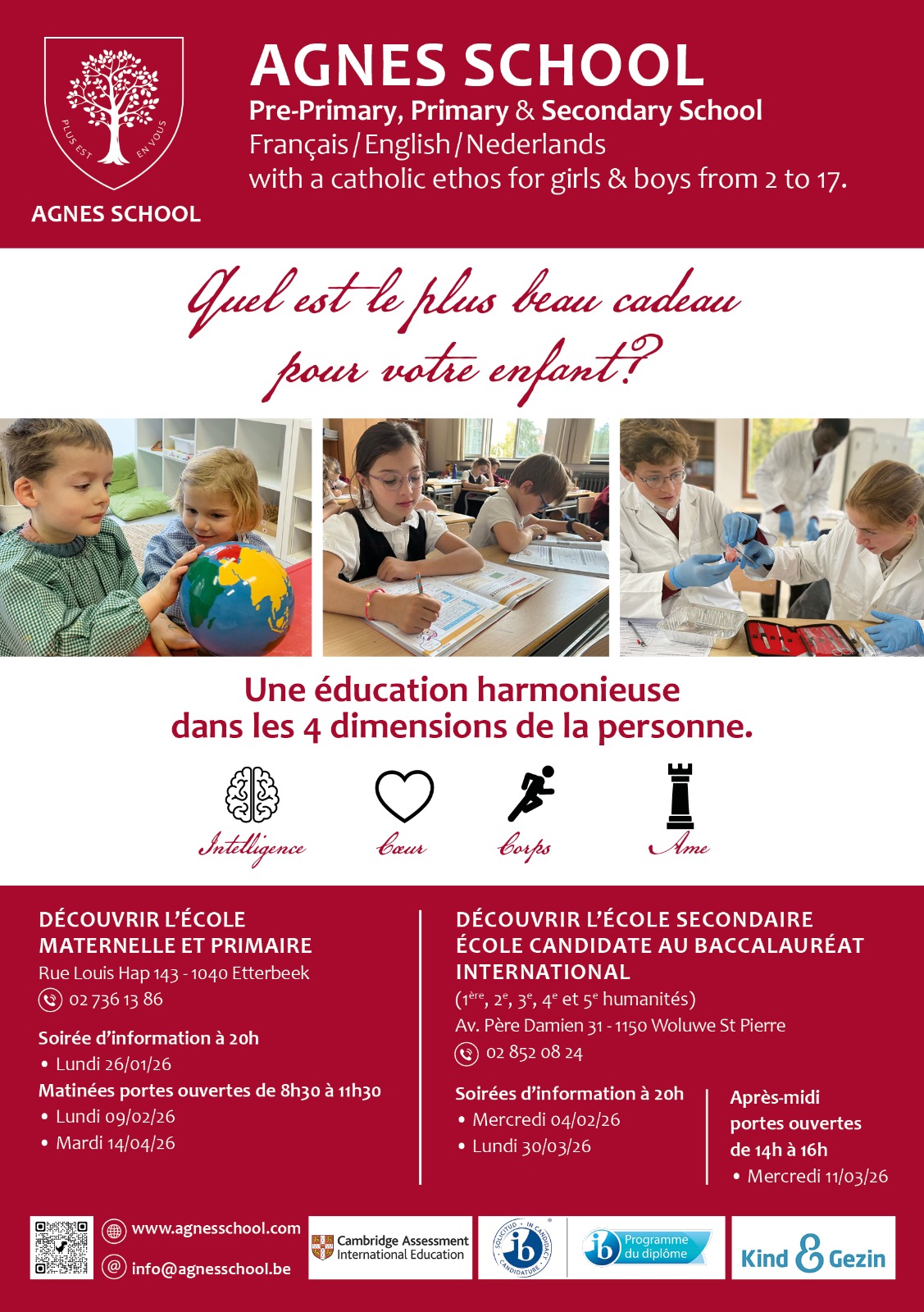 Mercredi 11 mars, 14h-16h : Portes ouvertes à Agnes School Secondaire (Avenue Père Damien 31- Woluwe Saint Pierre)
