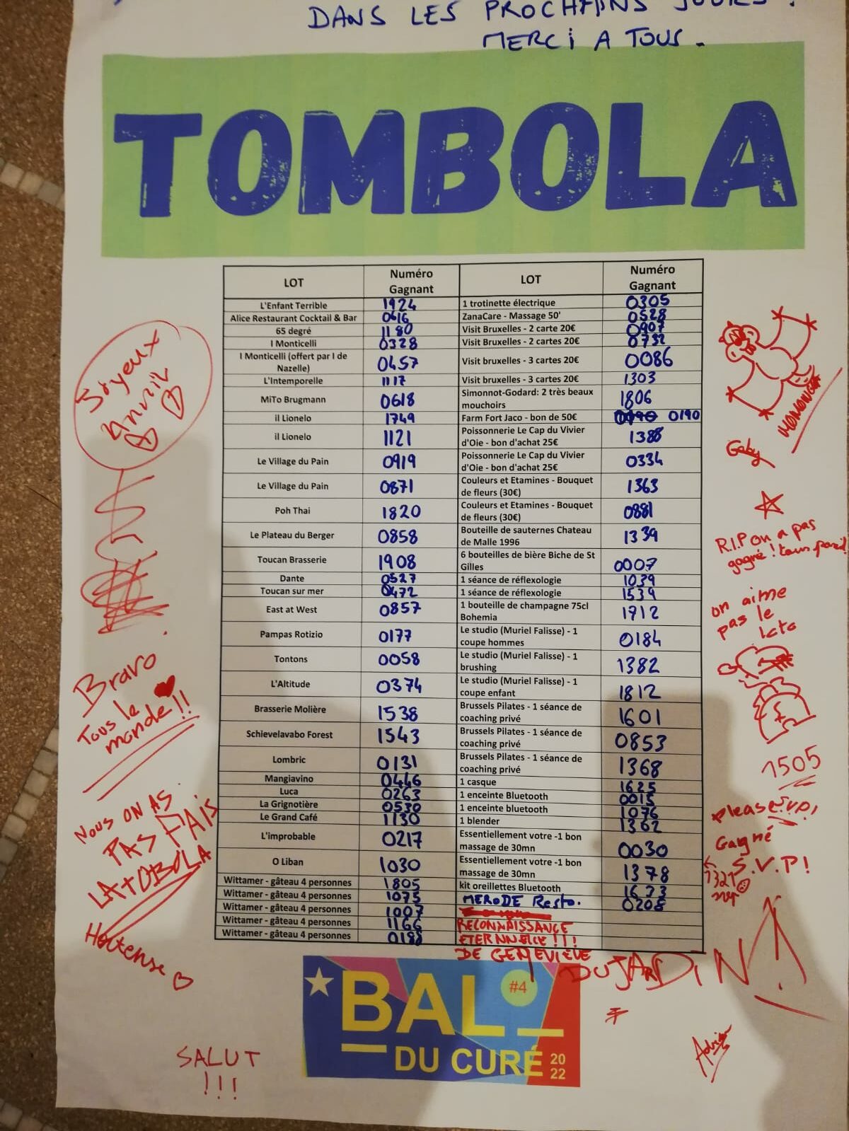 Merci à tous ceux qui ont démarché les restaurants et autres commerces, qui ont fait un don, qui ont vendu et acheté des billets !
