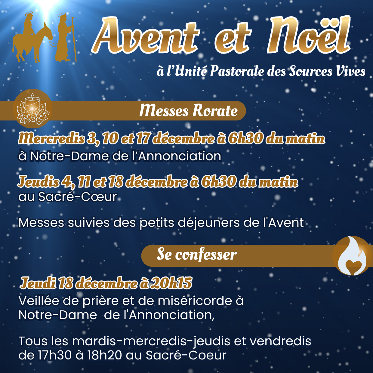 – Mercredis 3, 10 et 17 décembre à 6h30 à Notre-Dame de l’Annonciation