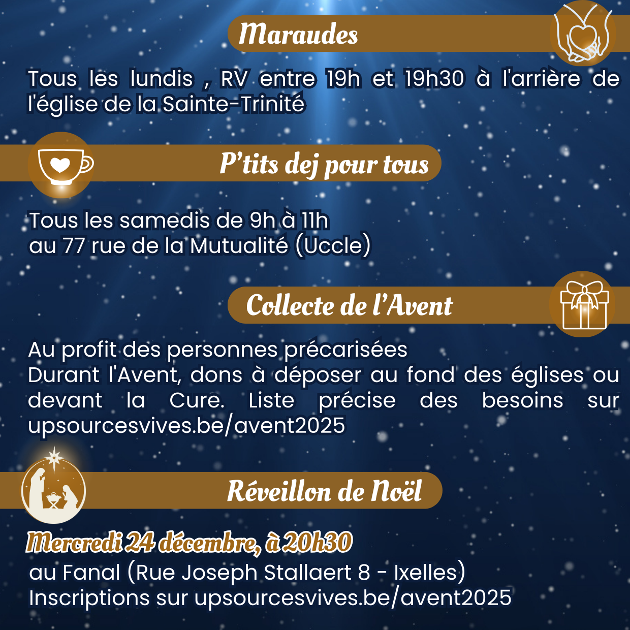 – Jeudis 4, 11 et 18 décembre à 6h30 au Sacré-Cœur